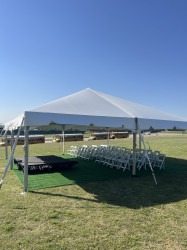 Frame Tent (Keder) — A clean, versatile, no-center-pole tent ideal for outdoor events where an open, unobstructed floor plan is essential. This style uses a sturdy metal frame with a keder-style top that slides into the frame track for a taut, professional-looking roof. It pairs with 8' solid white tent walls when you want protection from wind or to create enclosed spaces, and it can be anchored with heavy concrete blocks (500#) and covered with vinyl protectors for secure installation on hard surfaces. Choose your frame tent size to suit guest counts, dining layouts, stages, or vendor footprints. Designed for clarity of sightlines and flexible layouts, it’s a dependable choice for weddings, corporate events, festivals, or any outdoor gathering that needs a clean, sheltered space.